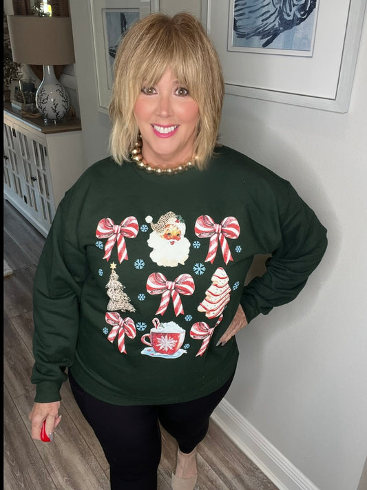 Merry Christmas Bow-Trim Sweatshirt – Forest Green